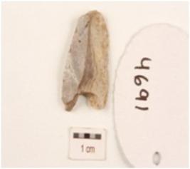 | Description / विवरण | Flake made on end struck chert flake, use wear marks along cutting edgtes, three blade scars on dorsal surface and prominent bulb on ventral. |