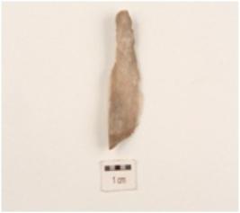 | Description / विवरण | Blade made on end struck chert flake, a ridge with flake scars on surface, use wear marks along cutting edges and smooth surface. |
