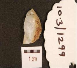 | Description / विवरण | A quartz flake with flake scars and cortex on dorsal. |