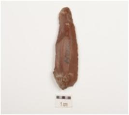 | Description / विवरण | A blade made on chert, flake scars on the surface and double ridge on surface. |
