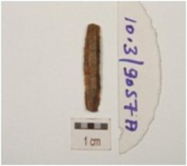 | Description / विवरण | A blade made of chert, trapezoidal cross-section and use-wear marks along the cutting edges. |