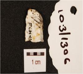 | Description / विवरण | A chert end struck flake with prepared platform, bulb on ventral and flake scars on dorsal. |