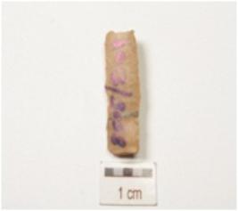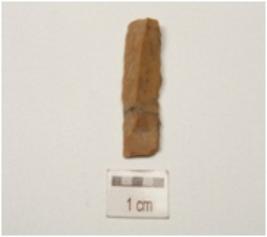 | Description / विवरण | A parallel sided blade made of chert, triangular cross-section and use-wear marks along cutting edges. |