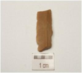 | Description / विवरण | A fragment of blade made on chert with a mid ridge, trapezoidal cross-section and use-wear marks along the cutting edges. |
