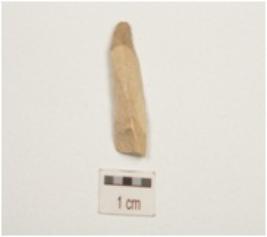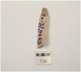 | Description / विवरण | A blade made of chert, triangular cross-section, mid ridge on dorsal and use-wear marks along the cutting edges. |