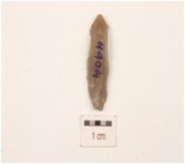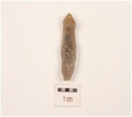 | Description / विवरण | A blade made on end struck chert flake, flake scars on dorsal side, partly retouch cutting edges, prepared platform on proximal end. Bulb of percussion on ventral side. |