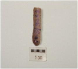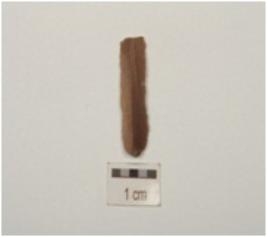 | Description / विवरण | A chert blade with triangular cross-section, use-wear marks along cutting edges, prominent bulb and mid ridge on dorsal. |