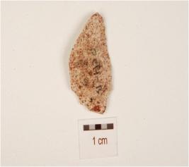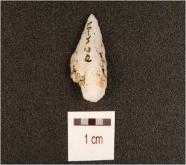 | Description / विवरण | A utilized flake made by chert, flake scars on the surface and sharp cutting edges. |