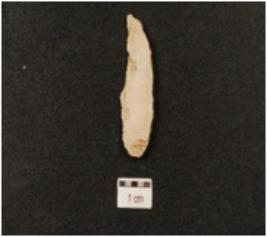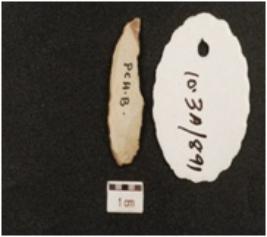 | Description / विवरण | A blade made on chert, diffused bulb on ventral side, flake scars on dorsal side and use wear marks along the cutting edges. |