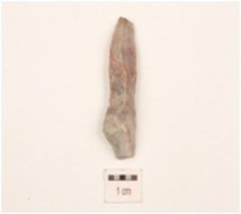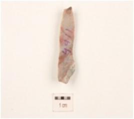 | Description / विवरण | A side scraper made on end struck chert flake, flake scars on the surface, bulb of percussion on ventral side, prepared platform on proximal end. Partly retouch cutting edges. |