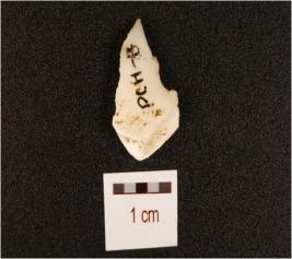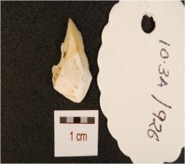 | Description / विवरण | A chalcedony flake, cortex and flake scars on the surface. |