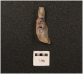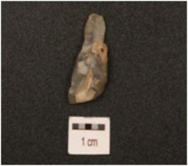 | Description / विवरण | A blade made on end struck chert flake, flake scars on dorsal side, bulb of percussion on ventral side, prepared platform on proximal end and partly retouch cutting edges. |