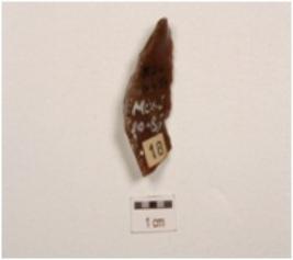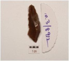 | Description / विवरण | Side-scraper made on side struck chert flake, regular retouches along cuttting edges, flake scars on dorsal surface, smooth surface. |