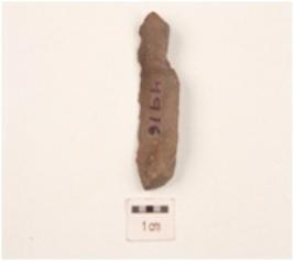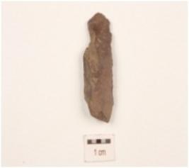 | Description / विवरण | A scraper made on end struck chert flake, flake scars on dorsal side, prepared platform on proximal end, bulb of percussion on ventral side and partly retouch cutting edges. |