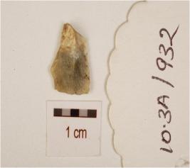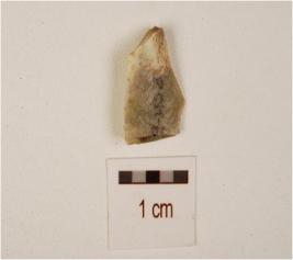 | Description / विवरण | A chalcedony flake, prepared platform on the proximal end and distal end broken and marks on the cutting edges. |