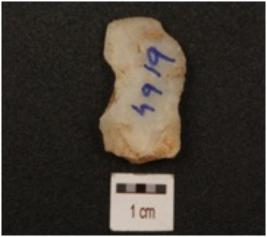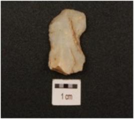 | Description / विवरण | A scraper made on end struck chert flake, flake scars on dorsal side, prepared platform on proximal end, bulb of percussion on ventral side and partly retouch cutting edges with used wear marks. |