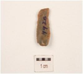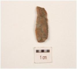 | Description / विवरण | A blade made on end struck chert flake, flake scars on dorsal side, prepared platform on proximal end, bulb of percussion on ventral side and partly retouch cutting edges. |