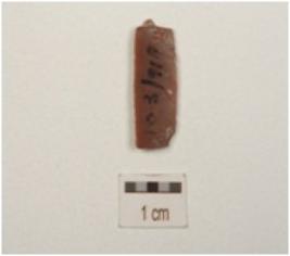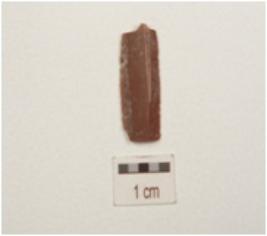 | Description / विवरण | Fragment of blade made of chert, 2 ridge on dorsal side and sharp edges. |