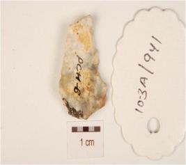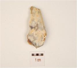 | Description / विवरण | A chalcedony flake, cortex on the surface, prepared platform on the proximal end and sharp edge. |