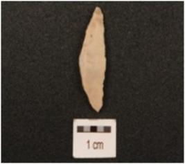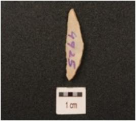 | Description / विवरण | A scraper made on end struck chert flake, partly retouch cutting edges, prepared platform on proximal end. Bulb of percussion on ventral side. |