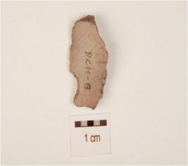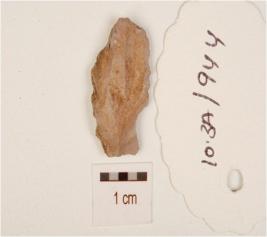 | Description / विवरण | A chert flake, prepared platform on the proximal end and flake scars on the surface. |