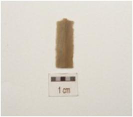 | Description / विवरण | A fragment of chert blade, mid ridge on dorsal side and partly retouch on cutting edges. |
