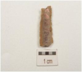 | Description / विवरण | Fragment of blade made of chert, single ridge on dorsal and edges with used wear marks. |