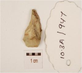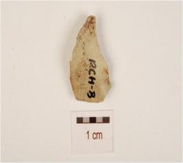 | Description / विवरण | A utilized flake made on chert, flake scars on the surface and shape edges. |
