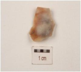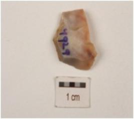 | Description / विवरण | A scraper made on end struck chert flake, flake scars on dorsal side, bulb of percussion on ventral side and partly retouch cutting edges. |