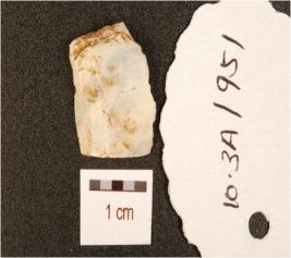 | Description / विवरण | A chert flake, cortex and flake scars on the surface, prominent bulb on the ventral side and sharp cutting edges. |