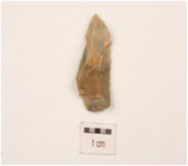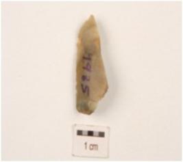 | Description / विवरण | A side scraper made on end struck chert flake, flake scars on dorsal side, pointed on distal end, bulb of percussion on ventral side. Partly retouch cutting edges. |