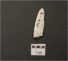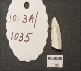 | Description / विवरण | A blade made on chert, double ridged and use marks on the cutting edge. |