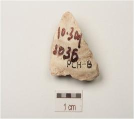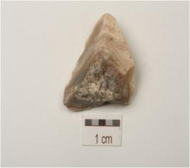 | Description / विवरण | A flake made on chert flake scars on the surface and irregular edges. |