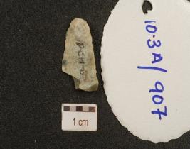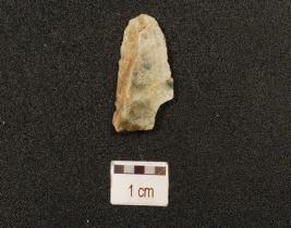 | Description / विवरण | A blade made on chert, diffused bulb on the ventral side, crusted ridge on the dorsal side, sharp working edge and prepared platform. |