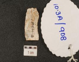 | Description / विवरण | A blade made on chert, mid ridge on the dorsal side and sharp working edge. |