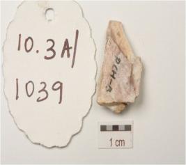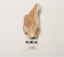 | Description / विवरण | A flake made on chert flake scars on the surface and irregular edges. |