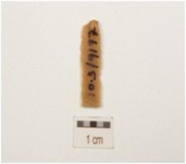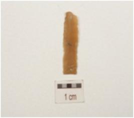 | Description / विवरण | Fragment of blade made of chert, bulb of percussion on ventral, prepared platform on proximal end, partly retouch cutting edges with used wear marks and flake scars on dorsal. |