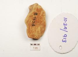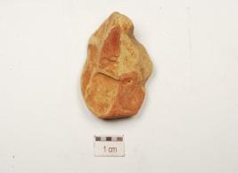 | Description / विवरण | A flake made on chert, prominent bulb on the ventral side. |