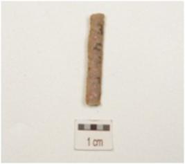 | Description / विवरण | Fragment of blade made of chert, 2 ridge on dorsal and used wear marks on edges. |