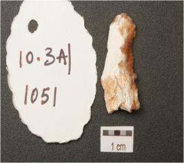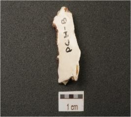 | Description / विवरण | A flake made on chert, flake scars on the surface and irregular edges. |