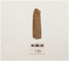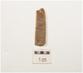 | Description / विवरण | Fragment of blade made of chert, bulb on ventral side and partly retouch on cutting edges. |