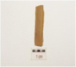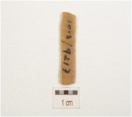 | Description / विवरण | Fragment of blade made of chert 2 ridge on dorsal side and cutting edges with use wear marks. |