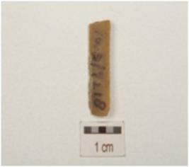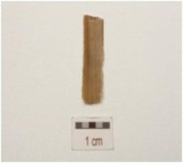 | Description / विवरण | Fragment of blade made of chert, double ridge on dorsal side and partly reotuch cutting edge. |