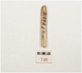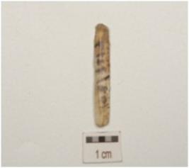 | Description / विवरण | Fragment of blade made of chalcedony, 2 ridge on dorsal, prepared paltform on proximal end and cutting edges with use wear marks. |