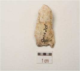| Description / विवरण | A flake made on chert, flake scars on the surface, irregular edges and prominent bulb at ventral side. |