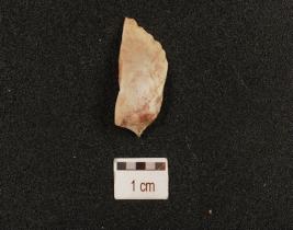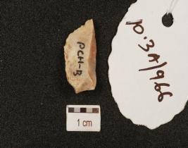 | Description / विवरण | A flake made on chert, diffused bulb on ventral and ridge on a dorsal side. |
