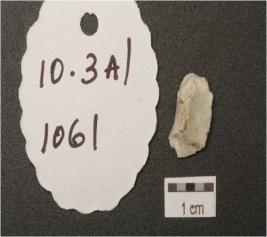 | Description / विवरण | A flake made on chert, flake scars on the surface and irregular edges. |