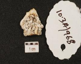 | Description / विवरण | A flake made on chert, bulb on ventral side, flake scars on dorsal side and use wear marks along the edges. |