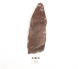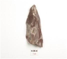 | Description / विवरण | Chert flake, triangular shape, flake scars on surface with ripple marks. |