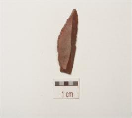 | Description / विवरण | A blade made on chert, single ridged, retouching along the working edge and triangular cross-section. |